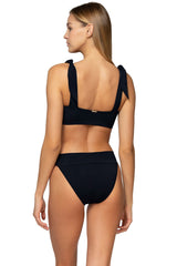 The Lily top is comfortable and ideal for long days at the beach! This top has wide straps that tie for perfect adjustablility and a cinched knot detail with a small keyhole. *Bottom sold separately. Fabric Content: 82% Nylon, 18% Spandex