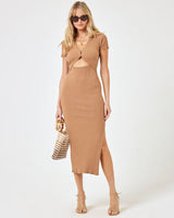 Upgrade your everyday look with the Lena Dress. Our signature rib knit is leveled up in a wider fabrication. This fitted frock has a tailored collared v-neck, button-front bodice with a cut-out + leg slit.