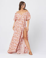 Perfect for warm summer nights, the Panama is a high-low wrap dress featuring romantic ruched shoulders, flowy short sleeves, and a flattering, functional tie waist. Can be worn either on or off the shoulder.