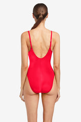 ROBIN PICCONE FIERY RED AVA SCOOP NECK ONE PIECE
