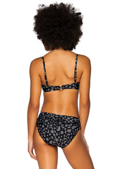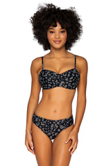 Add a little flair to your unforgettable bottom with our shirred waist hipster. Features include shirred band with cinched back detail and matching front and back colored lining. Sits straight across the hip. Coverage: Moderate, Sizes: S, M, L, XL, 14, 16 * Top sold separately. Fabric Content: 87% Recycled Nylon, 13% Spandex