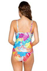 This is the perfect tankini for any woman who is seeking a fashionable top with a strong foundation. The twist tankini has a relaxed fit around the waist and provides full bust coverage and support. Special features include over the shoulder adjustable straps, hidden inner bra with underwire, powernet frame, removable cups, plush logo picot elastic, soft adjustable hook, eye back bra closure, and matching colored lining. Coverage: Full *Bottom sold separately Fabric Content: 83% Nylon, 17% Spandex