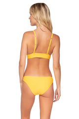 Refresh your poolside wardrobe with the Sydney Tri. A wide band and functional center tie give you both comfort and adjustability. Features include removable cups, matching colored lining, adjustable straps with a j-hook that enables the straps to convert to a cross back. Coverage: Moderate. *Bottom sold separately. Fabric Content: 87% Recycled Nylon, 13% Spandex
