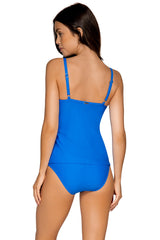 This is the perfect tankini for any woman who is seeking a fashionable top with a strong foundation. The twist tankini has a relaxed fit around the waist and provides full bust coverage and support. Special features include over the shoulder adjustable straps, hidden inner bra with underwire, power net frame, removable cups, plush logo picot elastic, soft adjustable hook, eye back bra closure, and matching colored lining. *Bottom sold separately. Fabric Content: 87% Recycled Nylon, 13% Spandex