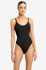 ROBIN PICCONE BLACK AVA SCOOP NECK ONE PIECE