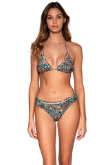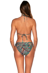 The Laney Triangle is the same fit as our best-selling Starlette Triangle, but with an added ladder trim detail and an exciting elevation to the classic. This top has adjustable, soft and stretchy spaghetti straps neck and back tie closures. Our extended sizes are equipped with a double row of spaghetti at the under bust, powermesh, a wider and softer neck and back tie. Coverage: Moderate. *Bottom sold separately. Fabric Content: 87% Recycled Nylon,13% Spandex