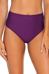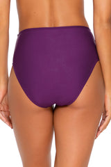 This high waist bottom camouflages your tummy allowing you to feel confident and secure. You'll feel comfortable all day long making your vacation that much more relaxing. Features include matching front and back colored lining. Waist sits just below belly button. Coverage: Full. Sizes: S, M, L, XL, 14, 16 Fabric Content: 85% Nylon, 15% Spandex