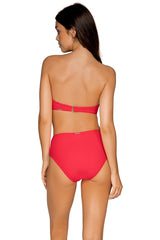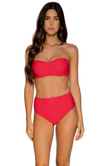 This high waist bottom camouflages your tummy allowing you to feel confident and secure. You'll feel comfortable all day long making your vacation that much more relaxing. Features include matching front and back colored lining. Waist sits just below belly button. Coverage: Full. *Top sold separately. Fabric Content: 87% Recycled Nylon, 13% Spandex